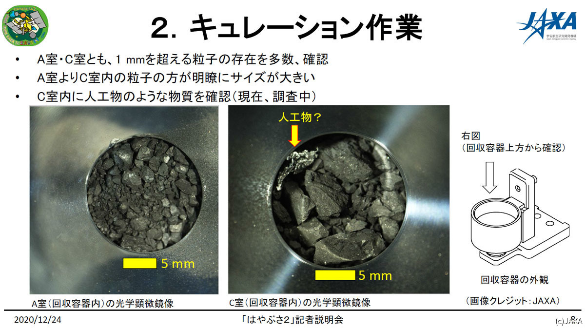 JAXA、はやぶさ2のサンプルキャッチャーC室内に5mm超の小石を確認