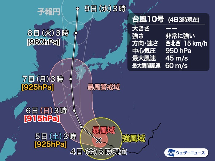 【速報】伊勢湾台風越えの戦後最大級の台風10号が日本上陸予定