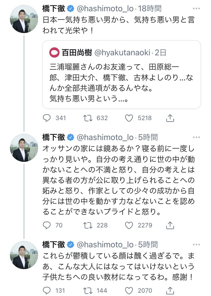 【速報】橋下徹さん、大物愛国者とレスバ中w w w w