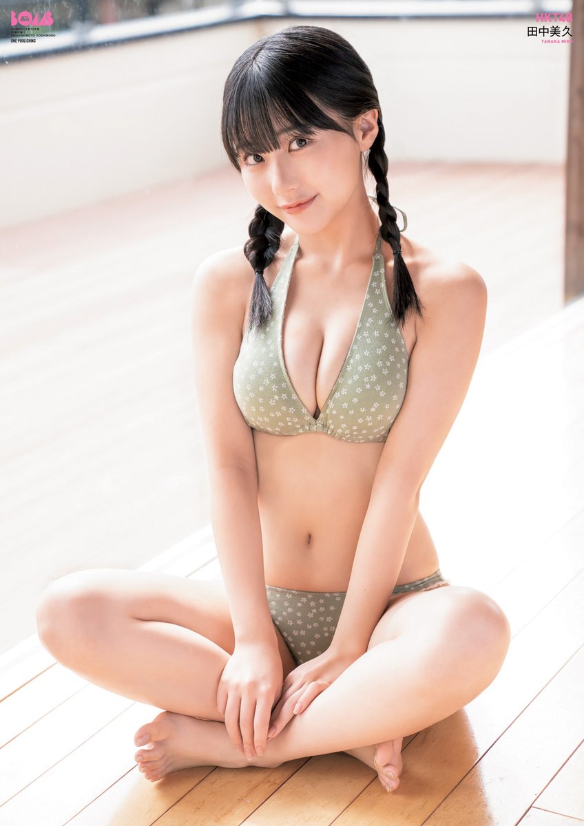 今号は、丸ごと一冊アイドルだらけの水着グラビア号。表紙は=LOVEの野口衣織が飾る。誌面にはほか、=LOVE、菅波美玲&谷崎早耶(≠ME)、天羽希純(#2i2)、小田えりな(AKB48)、黒嵜菜々子(Peel the Apple)、岡田彩夢(虹のコンキスタドール)らが登場する。http://mdpr.jp/news/detail/3337517昨年9月に発売された写真集での水着姿披露後、破竹の勢いで各雑誌のグラビアを飾り続けている田中。アイドル人生で守り続けてきたロングヘアーから、ばっさりとショートボブにしてますます大人っぽくなり、その人気は加速している。http://www.oricon.co.jp/news/2248003/full/田中美久(20)、零れ落ちそうな柔らかバストを大胆披露! 「週刊プレイボーイ」38号