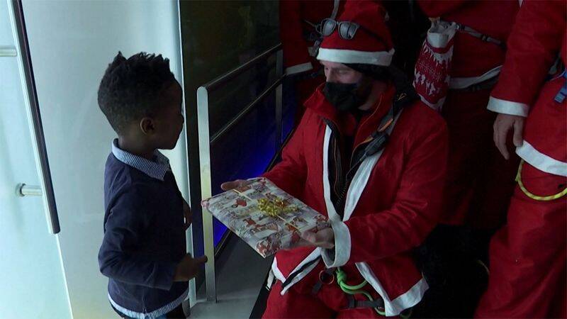【Xmas】サンタが屋根からロープで登場! 入院している子どもたちへプレゼント