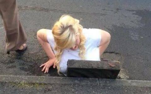 イギリス人JK、排水溝に落ちるも胸のおかげで助かる