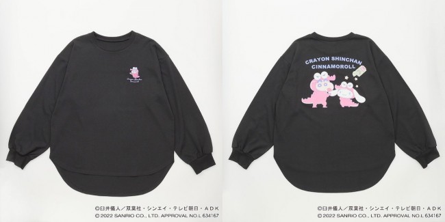 「クレヨンしんちゃん×シナモロール 裾ラウンド長袖Tシャツ・クロ(ステッカー付)」(税込 2838円)((C)臼井儀人/双葉社・シンエイ・テレビ朝日・ADK (C)