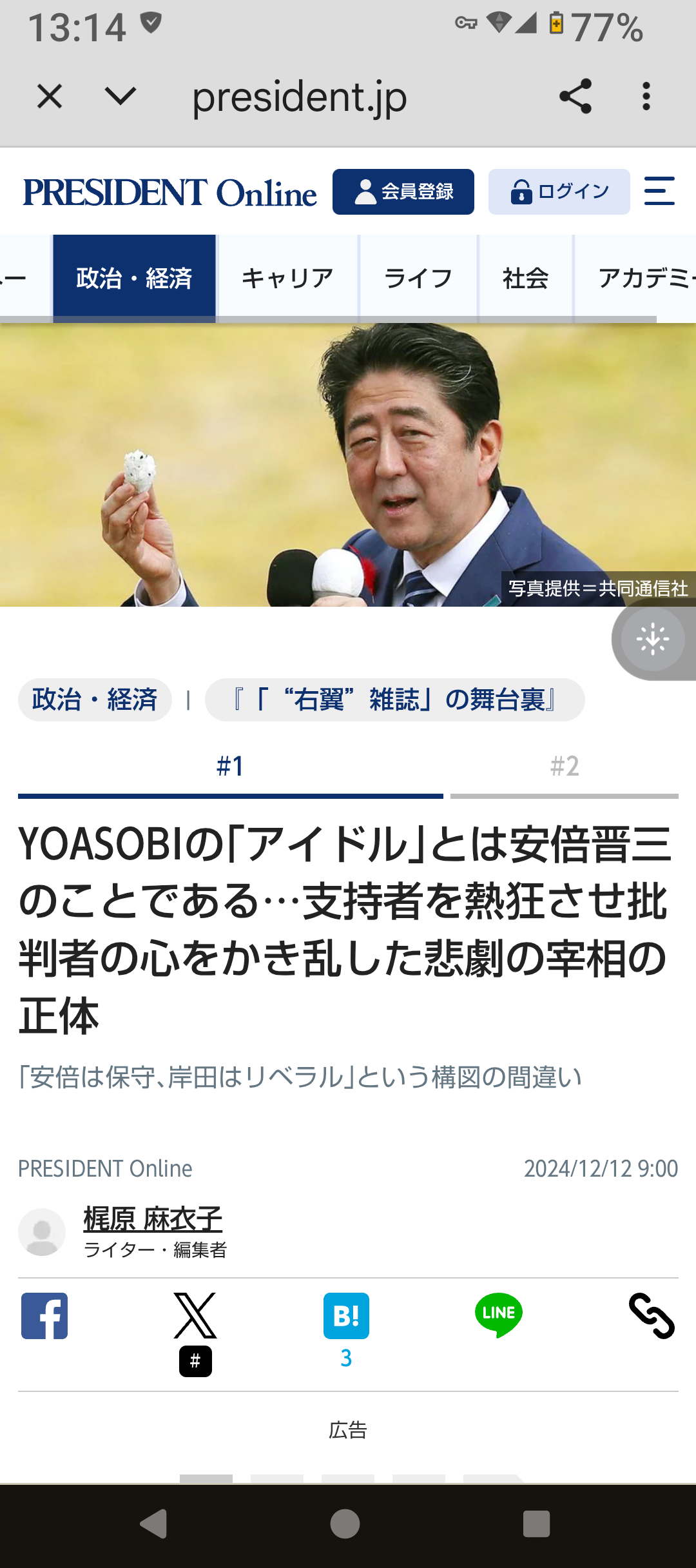 プレジデントオンライン、麹町文子氏の記事削除「史上最長、最悪、病弱、無能総理...」