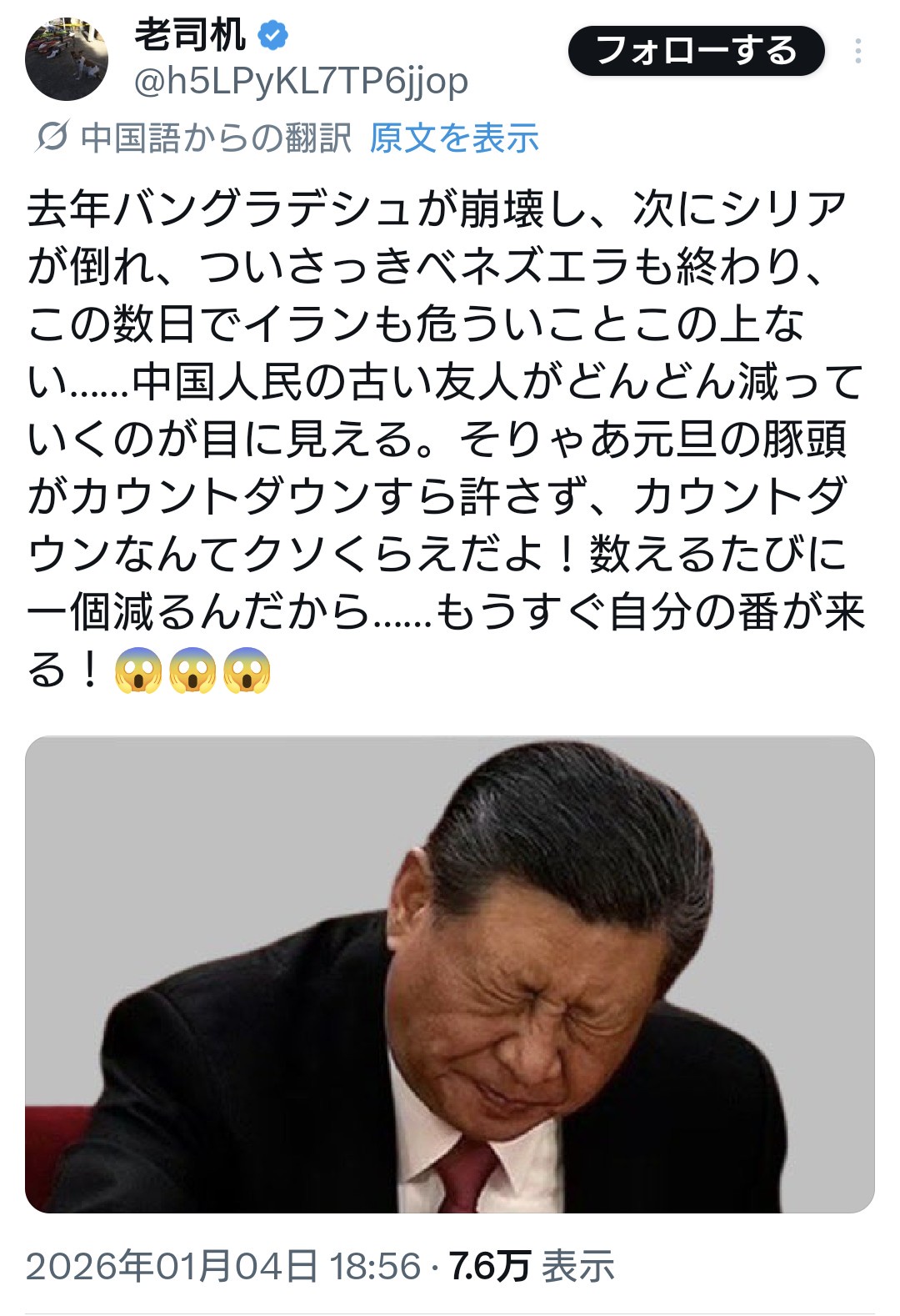 1:2026/01/05(月) 12:16:08.87 ID:7cNmEkfc0https://x.com/h5LPyKL7TP6jjop/status/2007752933635702923