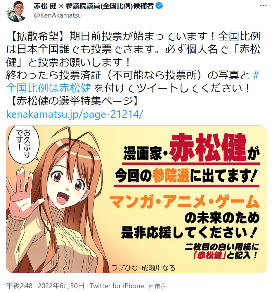 【速報】自民、『ラブひな』『ネギま!』の赤松健さんを擁立へ