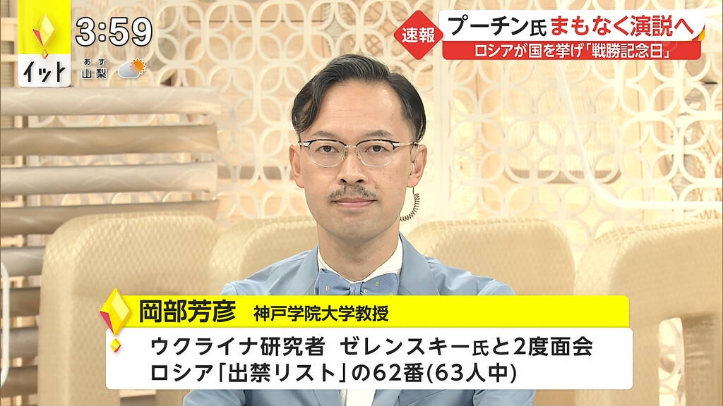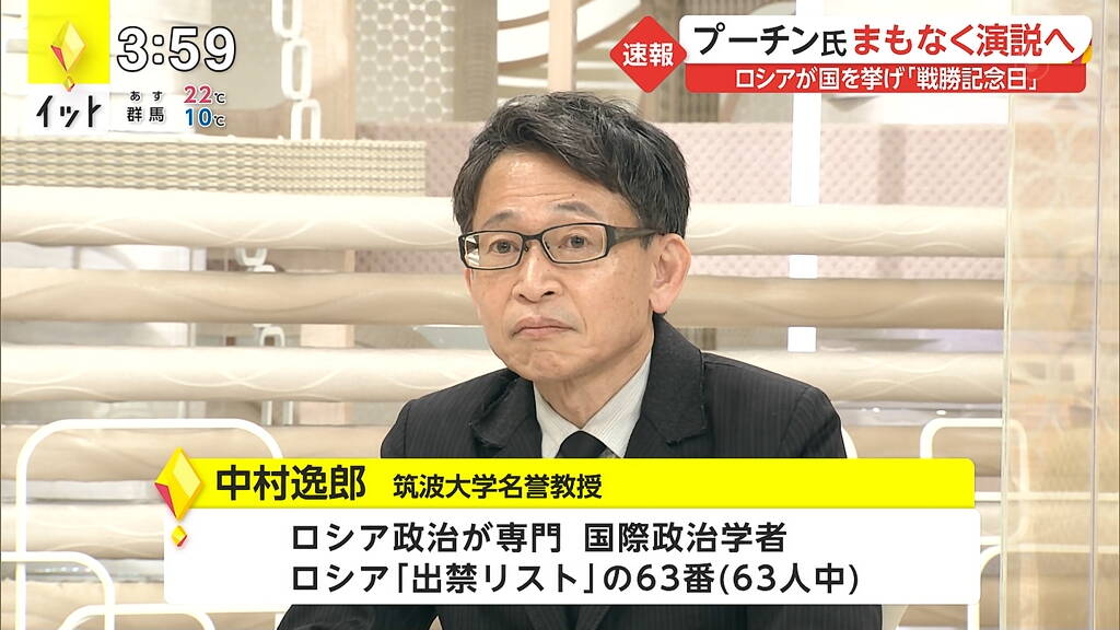 2:風吹けば名無し:2022/05/10(火) 08:28:27.49 ID:1mMUdIVo0.netフジのプーチン演説の解説の人ロシア出禁リスト62番と63番てどんな紹介だよw pic.twitter.com/NLBmlZZUX6— 霧。 (@kirifurikogen) May 9, 2022