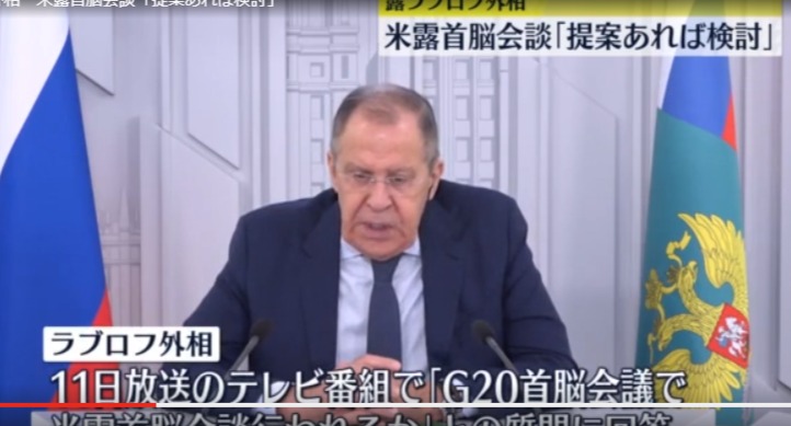 ロシアのラブロフ外相は11日、来月、開かれるG20首脳会議の際にアメリカから提案があれば、プーチン大統領がバイデン大統領との首脳会談を検討する用意があると述べました。ラブロフ外相「私たちは何度も述べている通り会談を決して拒否していない。そしてもし(アメリカ側から)提案があればそれを検討する」ラブロフ外相は11日に放送されたテレビ番組で、司会者からG20首脳会議にあわせて米露首脳会談は行われるかと聞かれ、このように答えました。ただ、現時点で、アメリカ側から公式な提案は受けていないとしています。一方、アメリカ国務省のプライス報道官は11日、ラブロフ外相のこうした発言について、ロシアが首都キーウを含むウクライナ全土を攻撃した直後の発言であることを指摘した上で、「我々はうわべだけの姿勢だと見ている」と述べ、現時点で取り合う考えがないことを強調しました。ロシア外相 米露首脳会談「提案あれば検討」