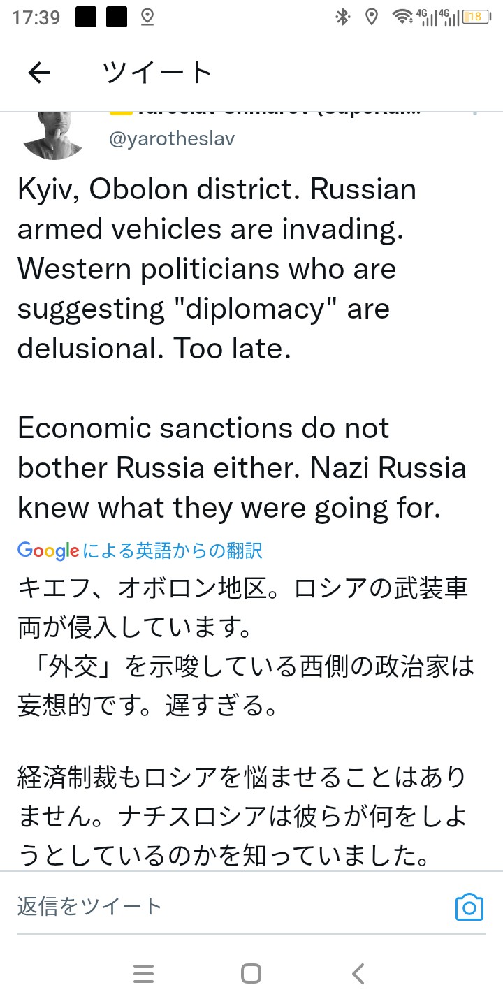 2/25(金) 17:22ウクライナメディアによりますと、ロシア軍の戦車がウクライナの首都キエフに侵攻したということです。ウクライナ軍と交戦状態にあるという情報もあります。(省略)ソース