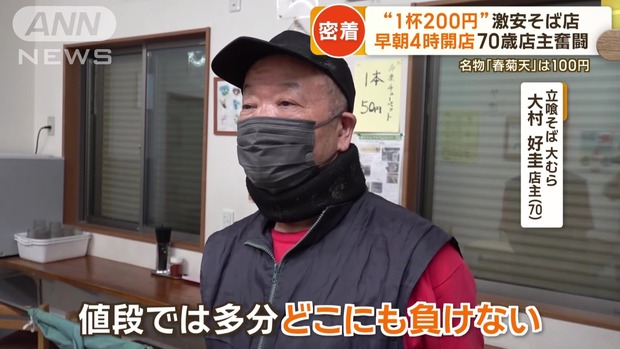 「1杯200円」都内で激安そば店 70歳店主が“薄利”で奮闘 店名にもこだわり