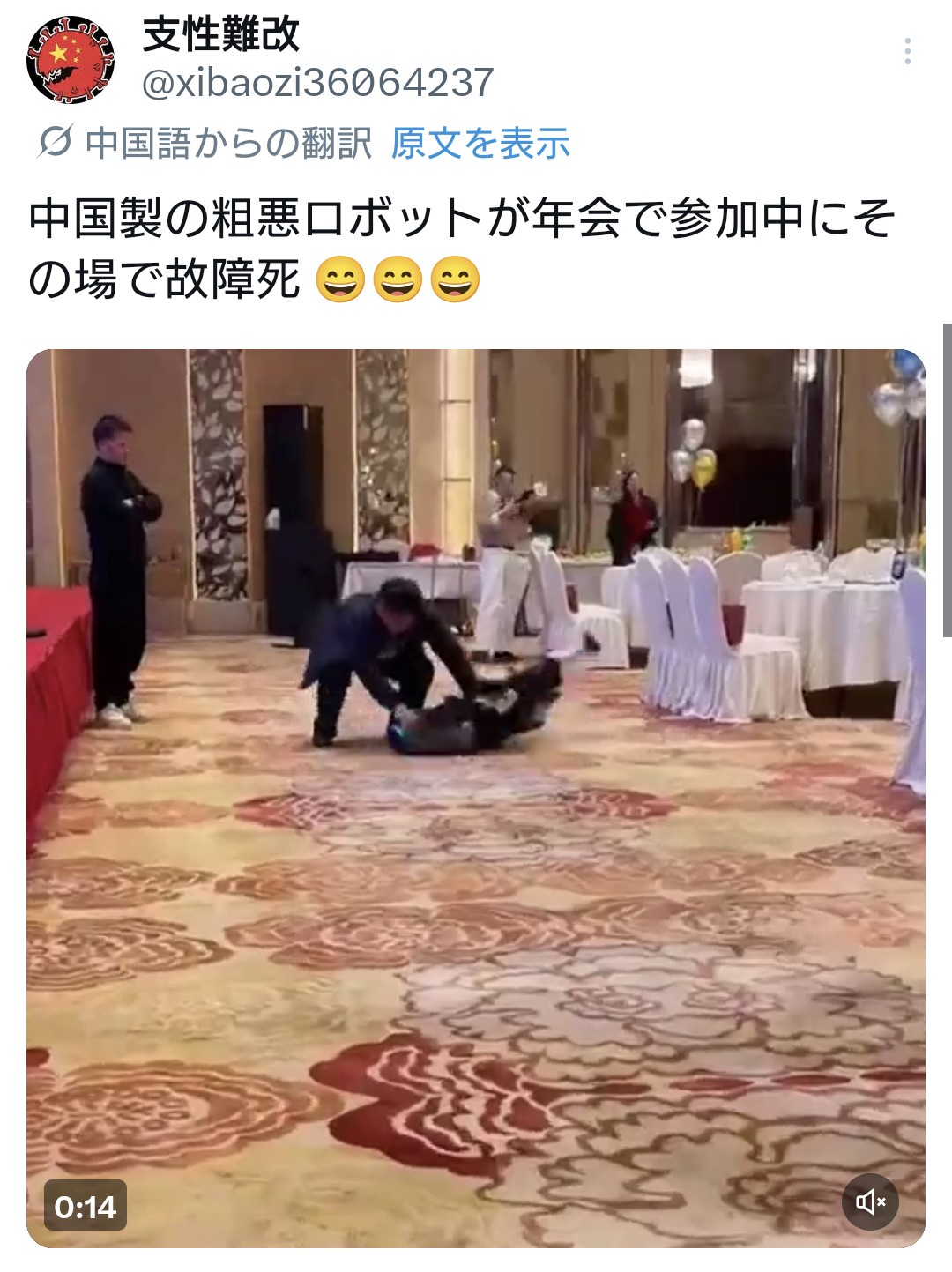 中国製の粗悪で低品質なロボットが年会参加中に痙攣して...