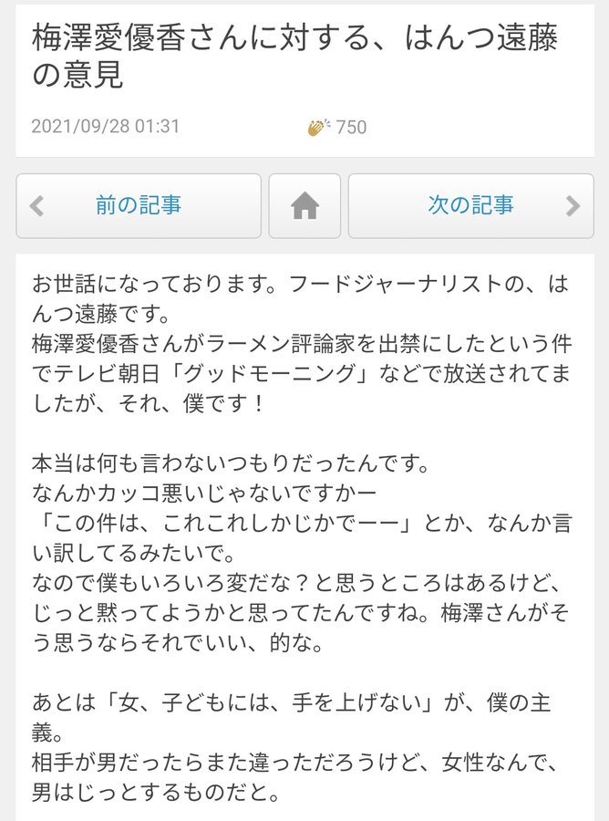 梅澤愛優香さんに対する、はんつ遠藤の意見