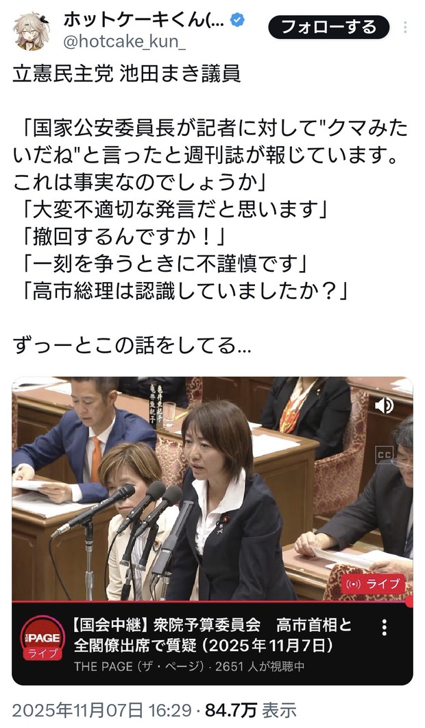 こんなくっだらねー質問の為に高市総理の睡眠時間が取れないなんて!😫とにかく皆んな立憲民主に投票するな!