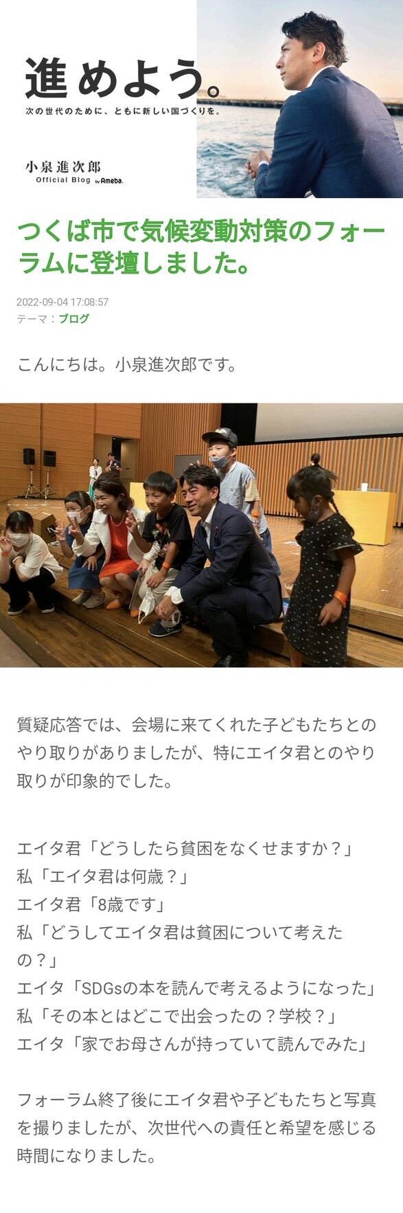 【画像】小泉進次郎、8歳の子供からの質問に答えず逃亡www