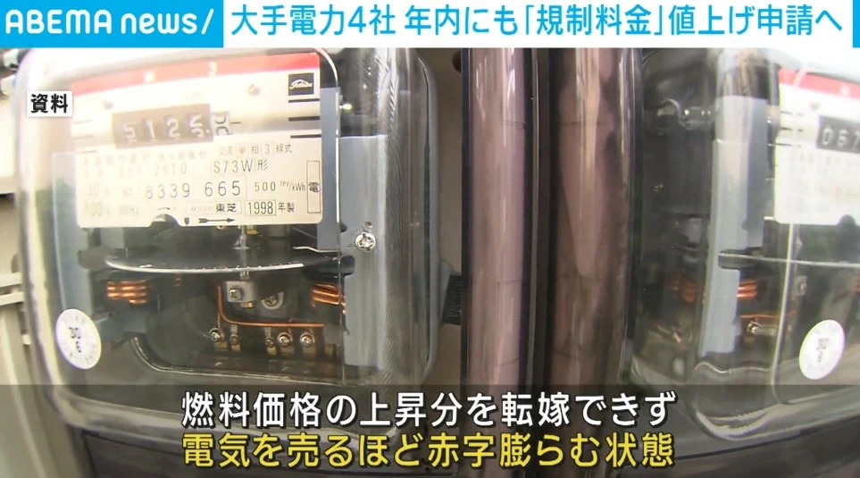 電気を売るほど赤字が膨らむ状態… 大手電力4社、政府に“規制料金の値上げ”申請をする方針固める全国で約7割の家庭が契約する「規制料金」は、国の規制で燃料調整費などに上限が設けられているが、大手電力10社すべてがこの上限に達している。このため、燃料価格の上昇分を料金にこれ以上転嫁できず電気を売るほど赤字が膨らむ状態で、東京、東北、北陸、中国の電力4社が年内にも政府に値上げを申請する方針を固めた。東京電力が申請をすれば10年ぶりとなる。電気を売るほど赤字が膨らむ状態… 大手電力4社、政府に“規制料金の値上げ”申請をする方針固めるhttps://news.yahoo.co.jp/articles/f8089b8ed2b53a629e1e50fdd20f86b2f7fa4306続きを読む