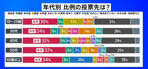 年代別比例投票先 18~29歳 「中道」0%wwwwwwwwwwwwwwwwwwww