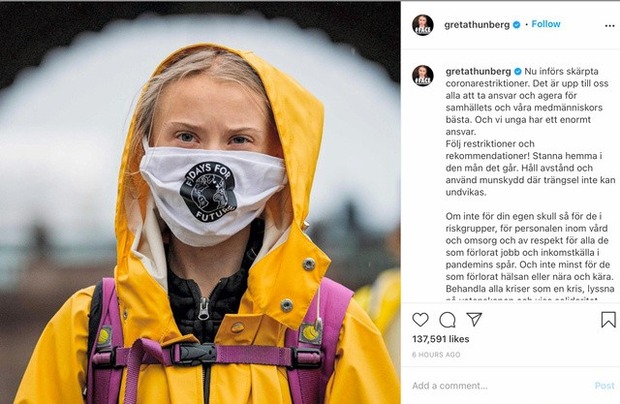 感染拡大のスウェーデン、ついにマスクを推奨 グレタさんもマスク姿投稿