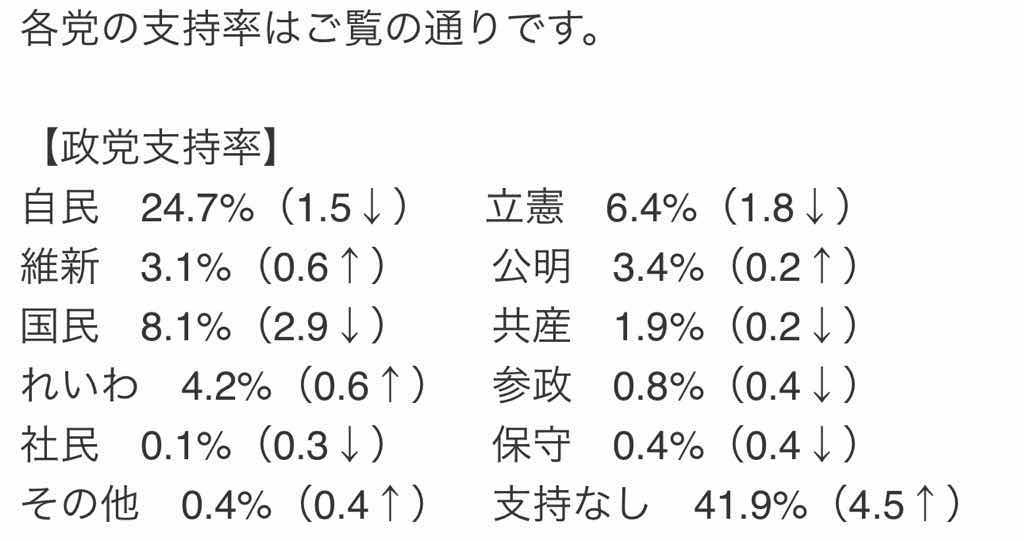 支持率 れいわ4.2% 維新3.1%←維新支持されなくなる何で?(画像あり)