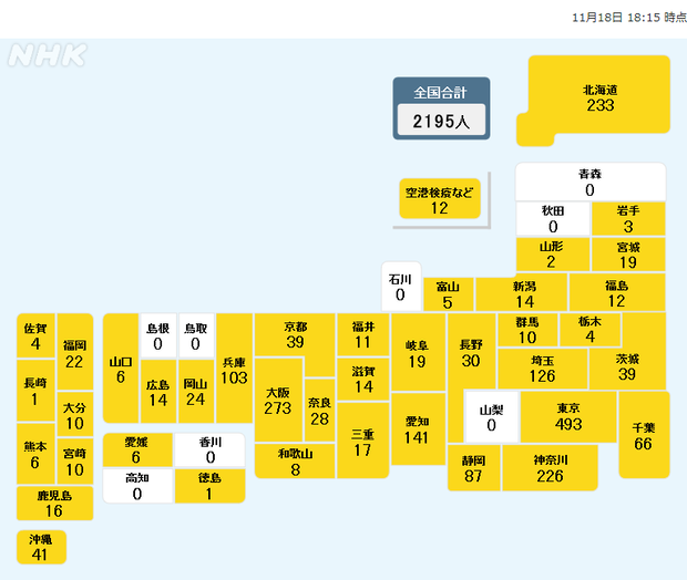 【国内感染】18日 2195人感染確認 過去最多に(午後6時15分) | 新型コロナ 国内感染者数 | NHKニュース