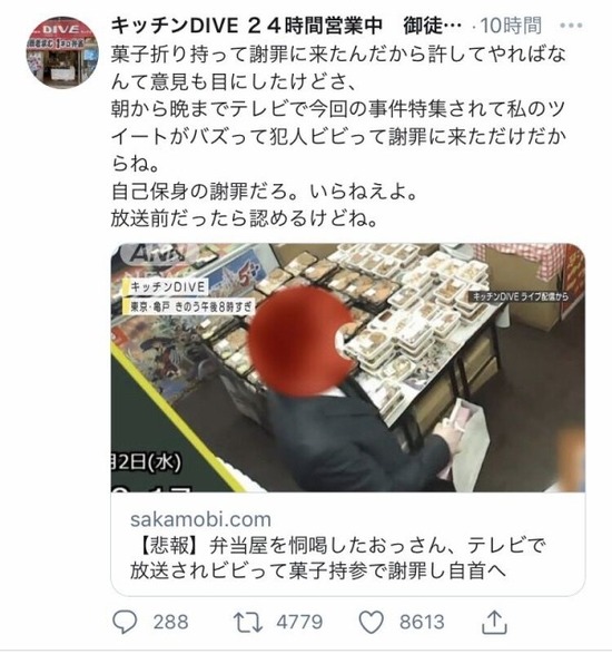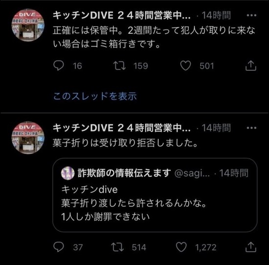 炎上中キッチンDIVEさん、矛盾ツイートが止まらない・・・