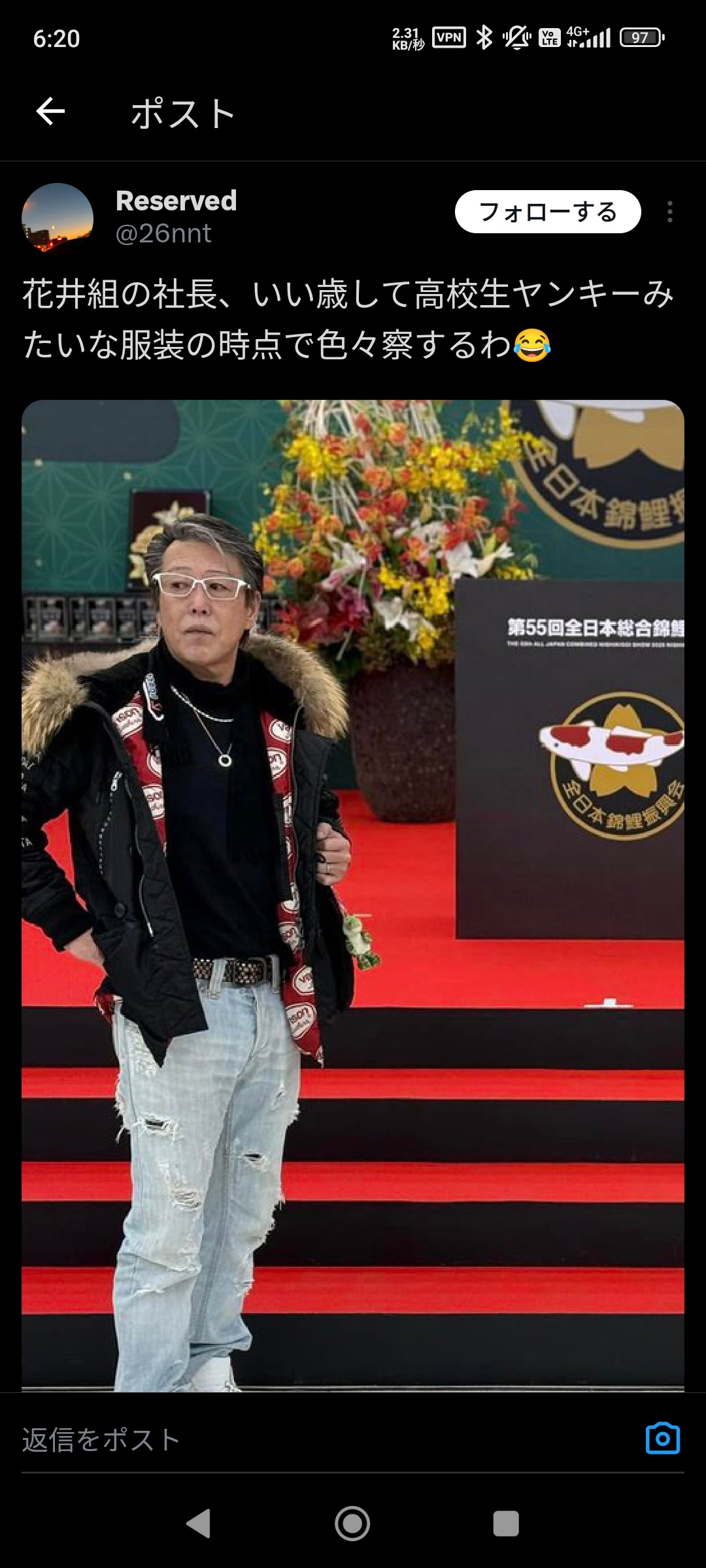 2 : 以下、?ちゃんねるからVIPがお送りします :2025/05/09(金) 07:49:26.001 ID:GfGkhDF00.net令和の虎めっちゃすきそう3 : 以下、?ちゃんねるからVIPがお送りします :2025/05/09(金) 07:50:30.933 ID:wBr5Fsva0.netわかりやすいファッションセンス4 : 以下、?ちゃんねるからVIPがお送りします :2025/05/09(金) 07:50:43.447 ID:E9ZlTul30.netこういう痛いおっさんちょくちょく見る人は見た目が10割5 : 以下、?ちゃんねるからVIPがお送りします :2025/05/09(金) 07:50:55.771 ID:EPW63HUm0.netダメージジーンズ久しぶりに見た転載元スレッド:https://viper.2ch.sc/test/read.cgi/news4vip/1746744541/続きを読む