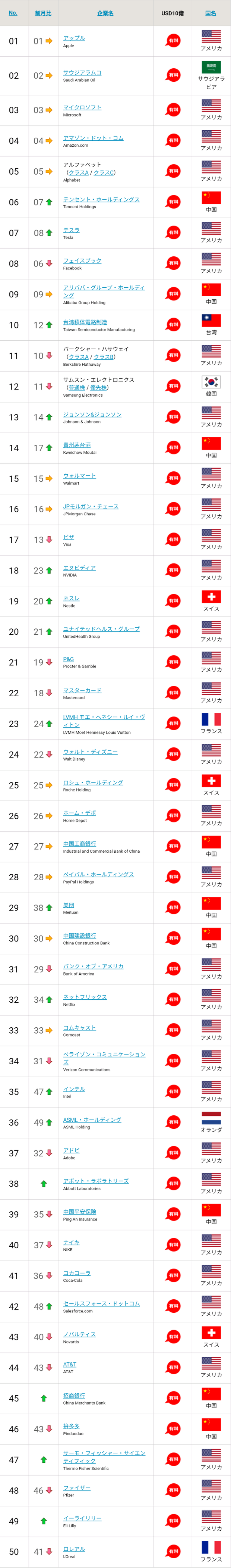 時価総額TOP50 中国どころか韓国にすら負けてる