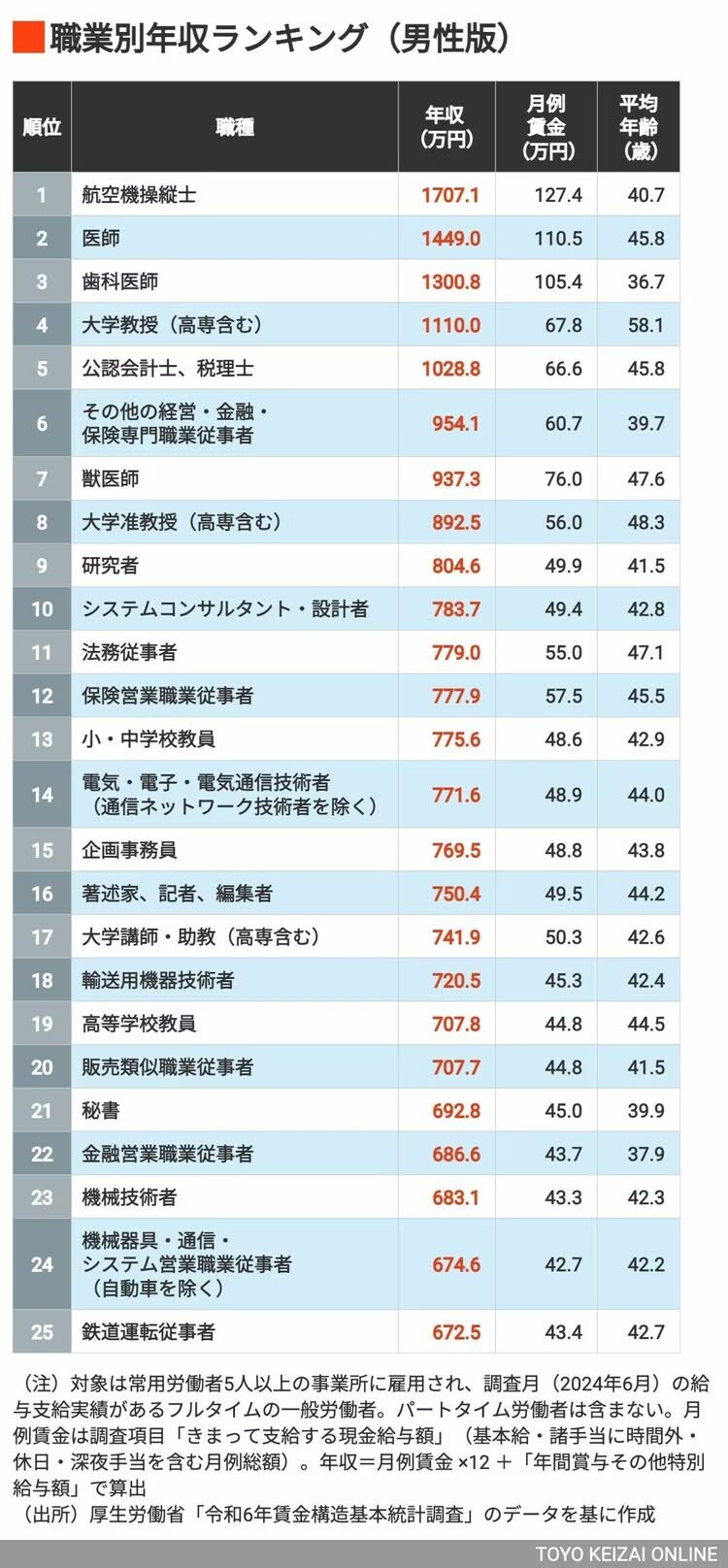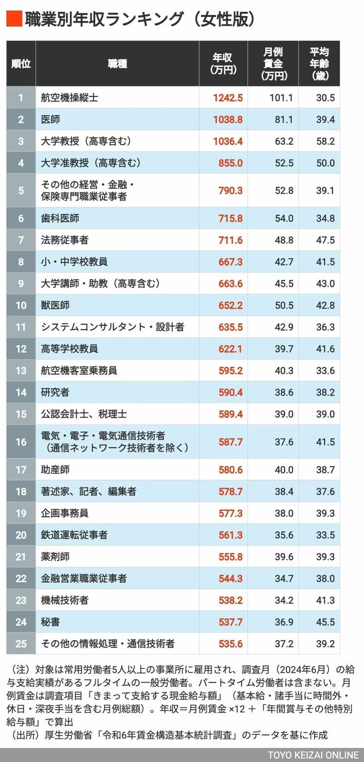 厚労省「令和6年賃金構造基本統計調査」で公表されている職業のデータを基に作成