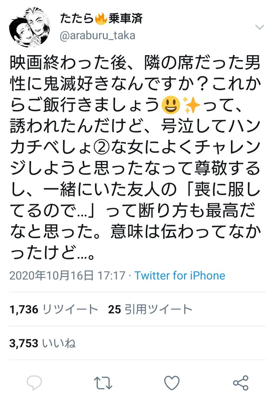 腐女子「鬼滅の映画終わった後、隣の席の男にご飯誘われた」