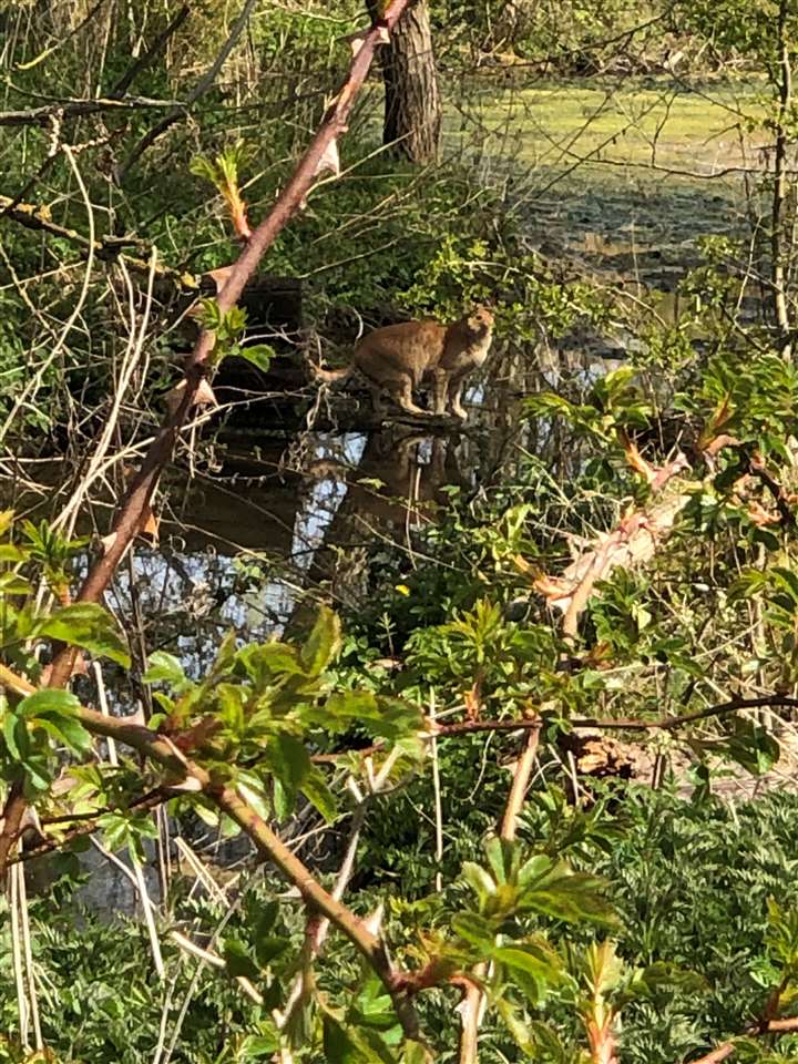 彼は次のように語った。「この巨大な猫が水辺に座っているのを見たとき、私は犬と一緒に小川のそばを歩いて家に帰っていました。池と草に覆われたエリアがあります。普通の猫よりずっと大きく見えたので、写真を撮りました。