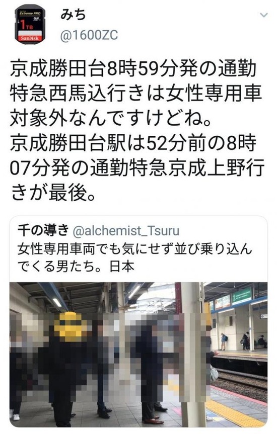 【画像】女さん「いやああ!!女性専用車両なのに男が並んでるう!!」鉄オタ「!!」シュポポポ