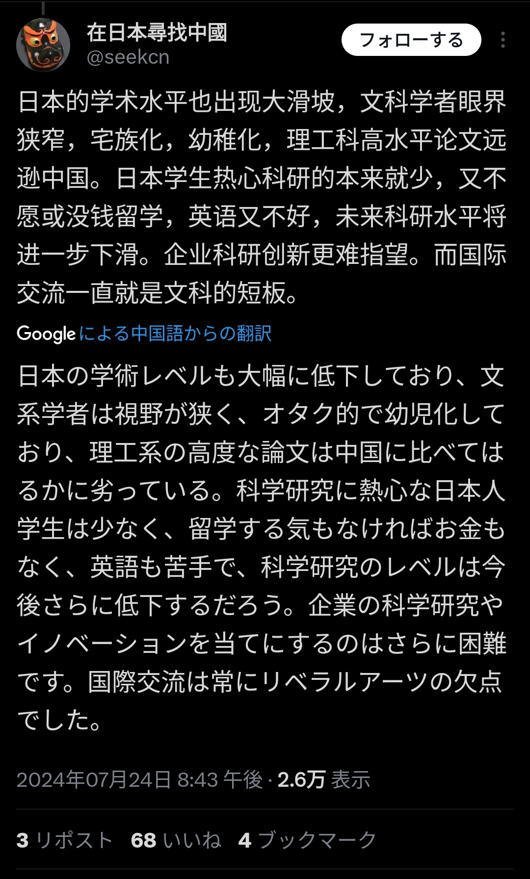 まごうことなき正論火の玉ストレート。日本人「中国人に言われたくない!中国よりマシ!」と現実逃避🤣転載元スレッド: