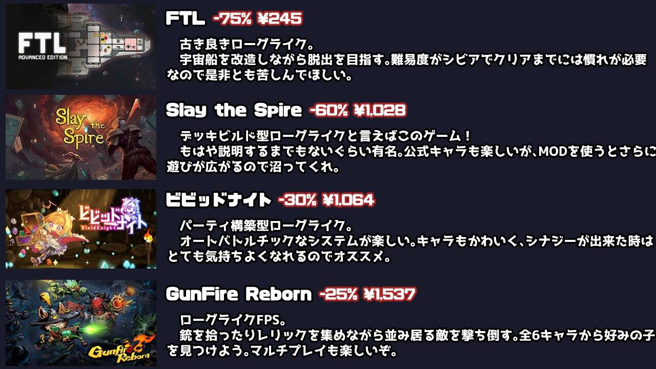 2:ななし: ID:Ak1C02KL0.nethengbandが一番面白い3:ななし: ID:539AloZJM.net不思議ダンジョンシリーズ、無事逝く4:ななし: ID:UUTSWC9Hr.net満月の夜おもろいよ。アプリだけどめっちゃ充実しとる続きを読む