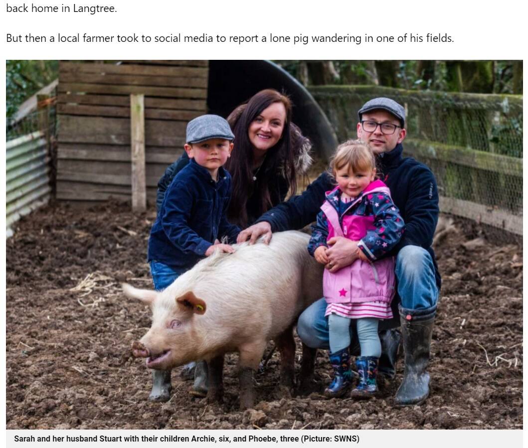 英デボン州北部のラングツリーで農家を営むサラ・アランさん(Sarah Allan、29)と夫のスチュアートさん(Stuart)は、手塩にかけて育てた3頭のブタを17キロ離れた食肉処理場にトラックで運んでいた。