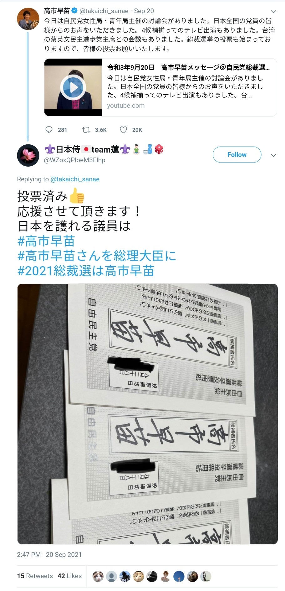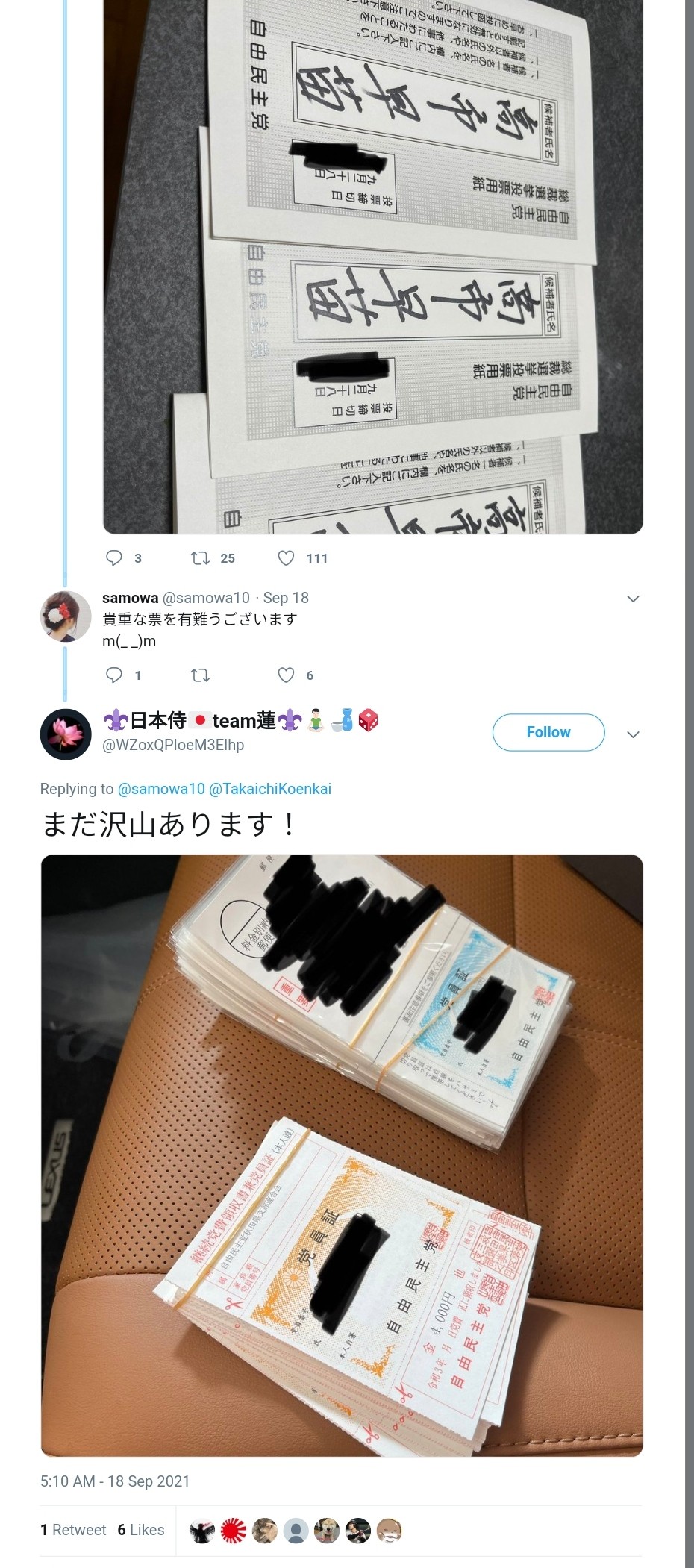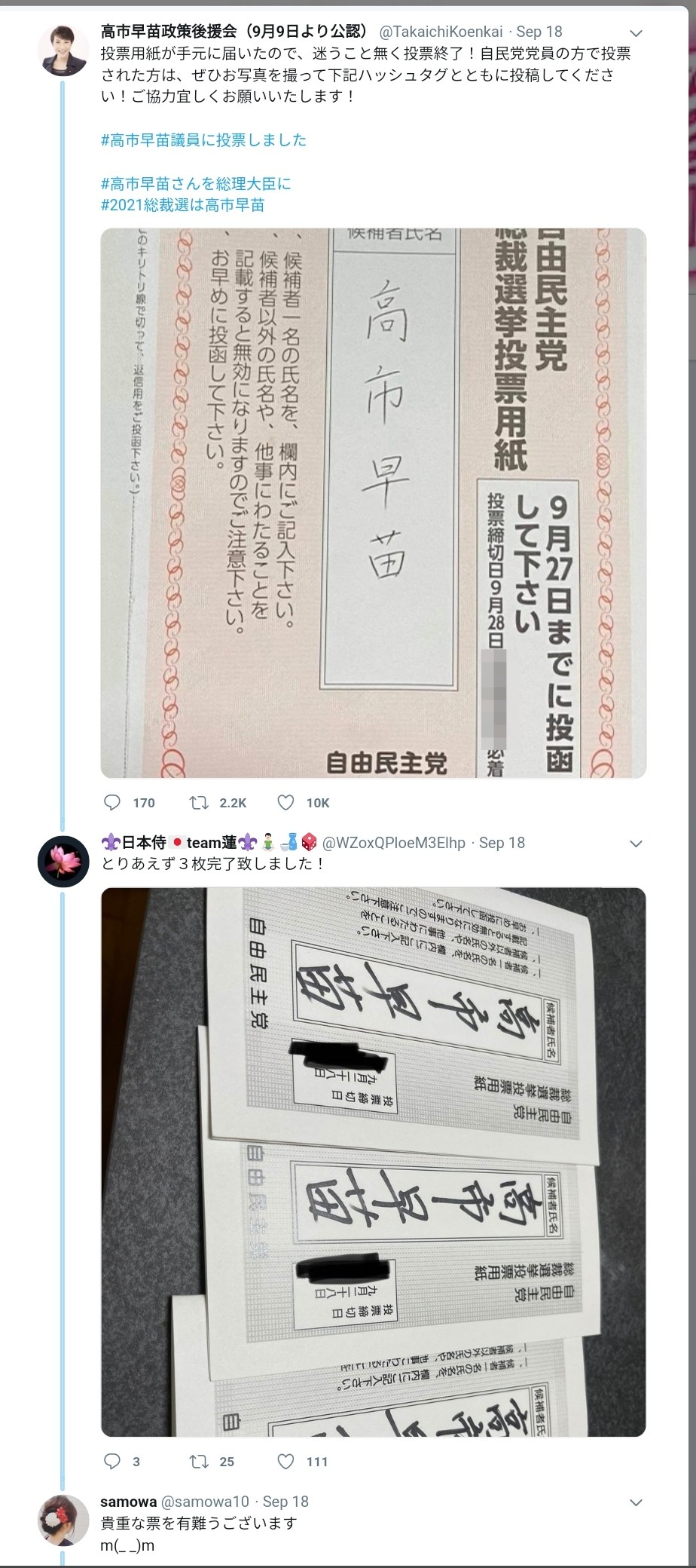 自民党総裁選の「投票用紙」がメルカリに。https://news.yahoo.co.jp/articles/b9aa2c54aa20464a656a37e99f9c308977866733転載元スレッド:http://hayabusa3.2ch.sc/test/read.cgi/news/1632378343/