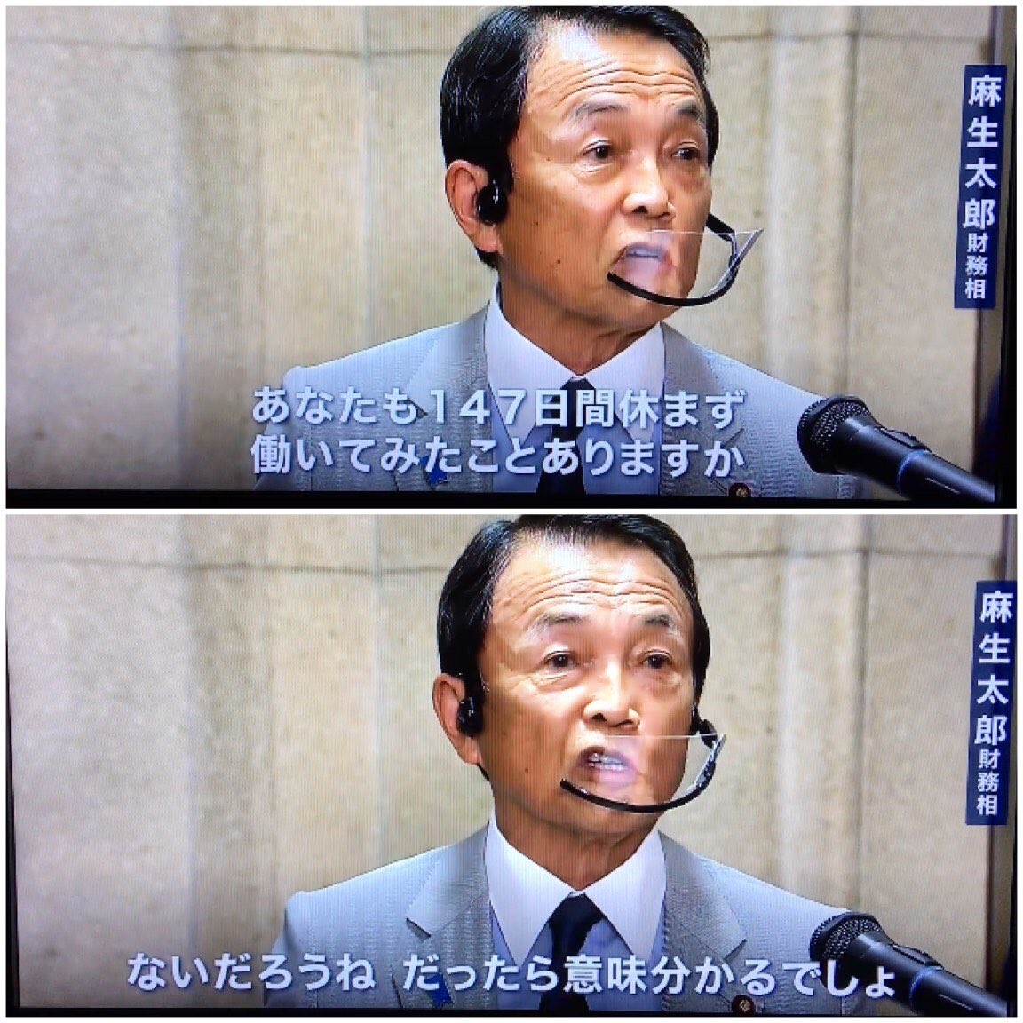 麻生太郎「あなたたちは147日間休まず働いてみたことありますか?ないだろうね。分からないでしょ」