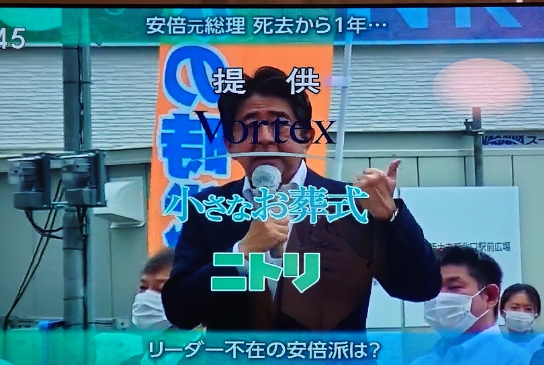 TBSさん、安倍元総理の映像に葬儀会社の広告を重ねてしまう